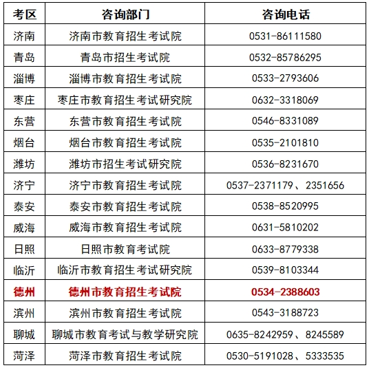 山东省2025年上半年中小学教师资格考试(笔试)各市教育招生考试机构联系方式