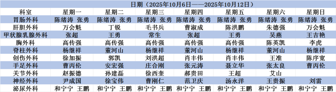外科系统线上排班表