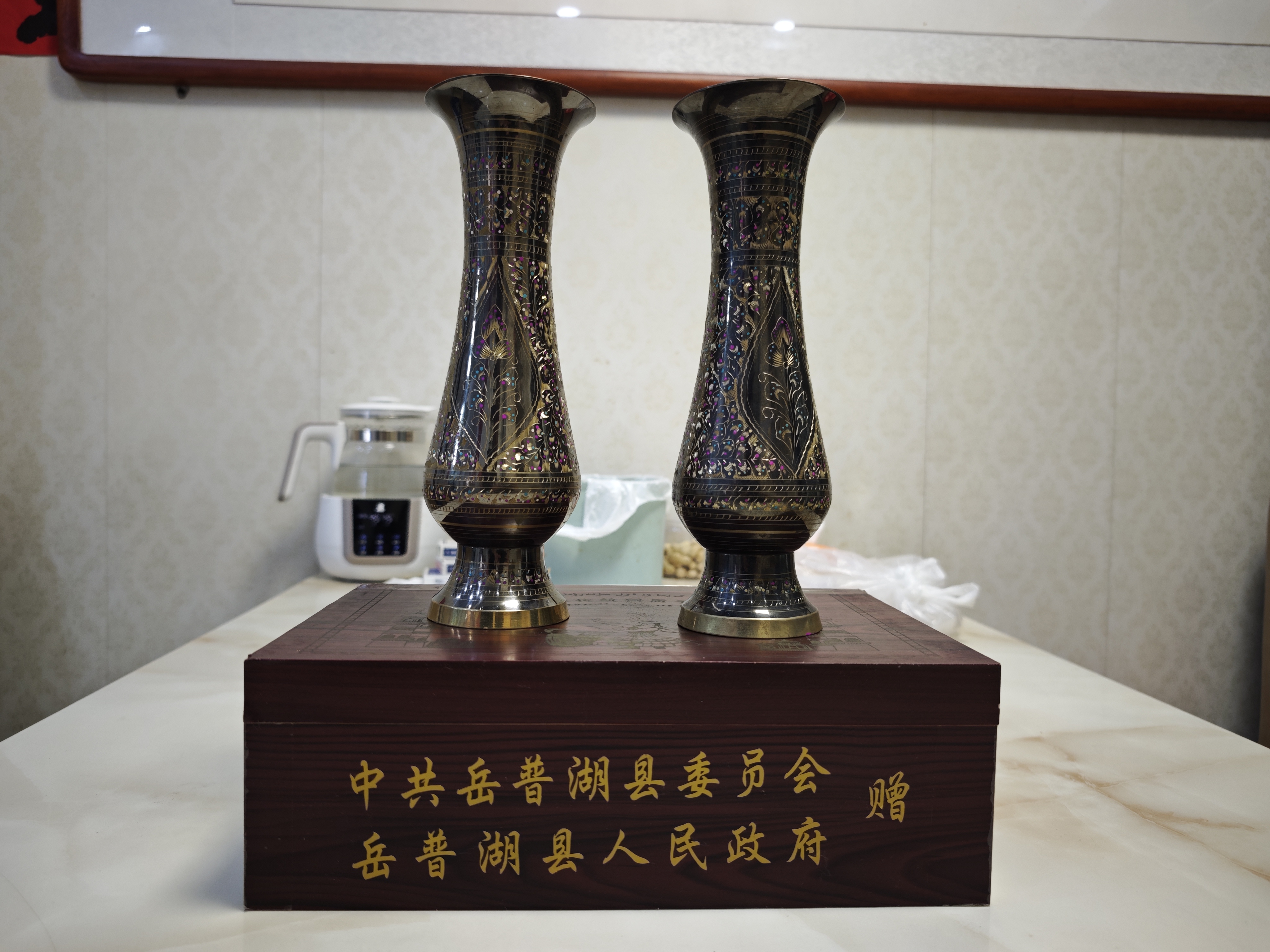 2008年周长来援疆结束后,岳普湖县政府赠送给他的一对工艺品