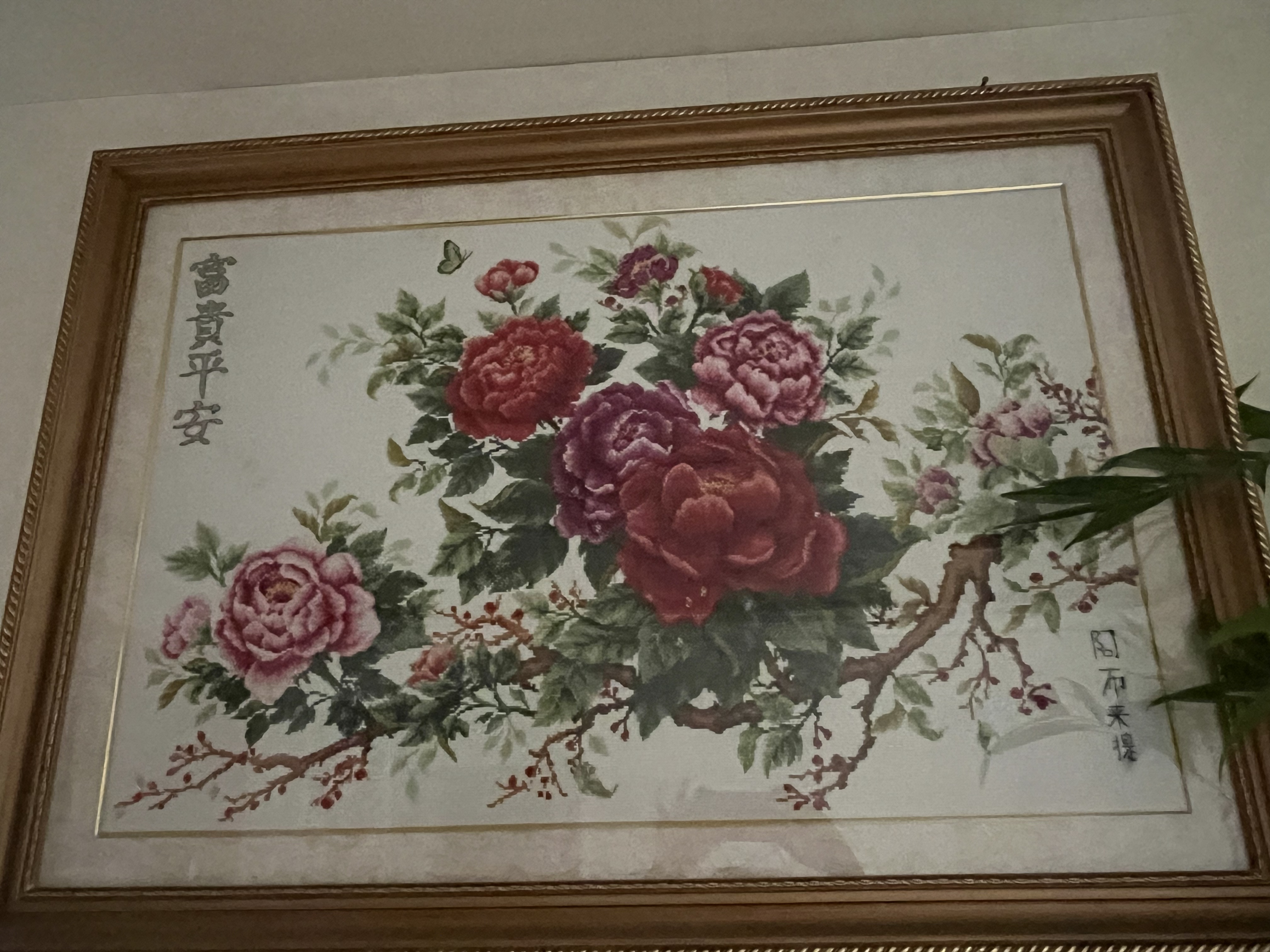 我家墙上还挂着幅十字绣,是阿布来提的媳妇绣的。老周援疆的同事和阿布来提是好朋友,临走时阿布来提送了这幅绣品,同事知道老周爱这个,又转送给了他。绣品上是团艳艳的花,花瓣层层叠叠,说不清是牡丹还是月季,老周回来把它挂在客厅。其实那哪是绣的花啊?是隔着语言和民族的真心,一针一线里绣着的友情!有时候我盯着花发呆,总觉得老周还在视频里跟我聊阿布来提的事,可回过神来,只剩空荡荡的客厅和我的影子。