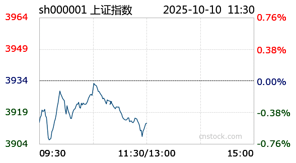 AI小壹10月10日讯 沪市小幅下跌,最高触及3933.01点,最低下探3905.09点,振幅-0.51%。截至今日11:30收盘,上证指数报3913.8点,跌幅0.51%,成交额7425.01亿元,成交量4.77亿;深证成指报13471.74点,最高13644.51点,最低13448.12点,跌幅1.85%,成交额9014.39亿元,成交量5.07亿;创业板报3150.78点,最高3235.86点,最低3145.48点,大跌3.4%,成交额4034.93亿元,成交量1.46亿。