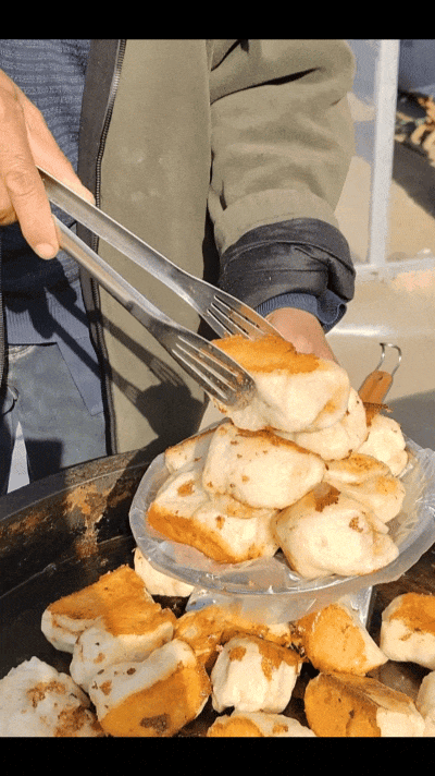 烟台福山大集的“面鱼”炸得金黄蓬松,