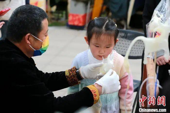 小朋友在东营“黄河大集”上体验吹糖人。(资料图)梁犇 摄