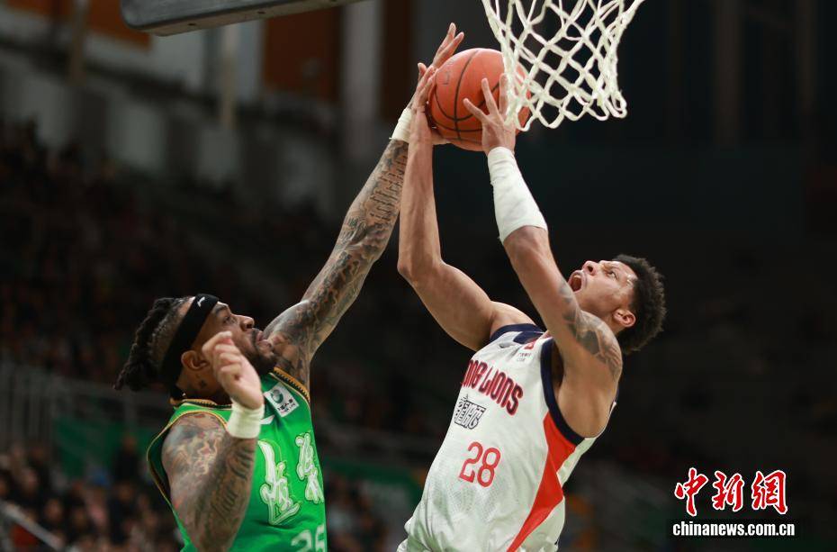 3月18日,在辽宁沈阳举行的2025-2026赛季中国男子篮球职业联赛(CBA)常规赛第27轮比赛中,辽宁本钢队主场以97比86战胜广州朗肽海本队。图为辽宁本钢队球员莫兰德(左)在比赛中防守。中新社记者 于海洋 摄